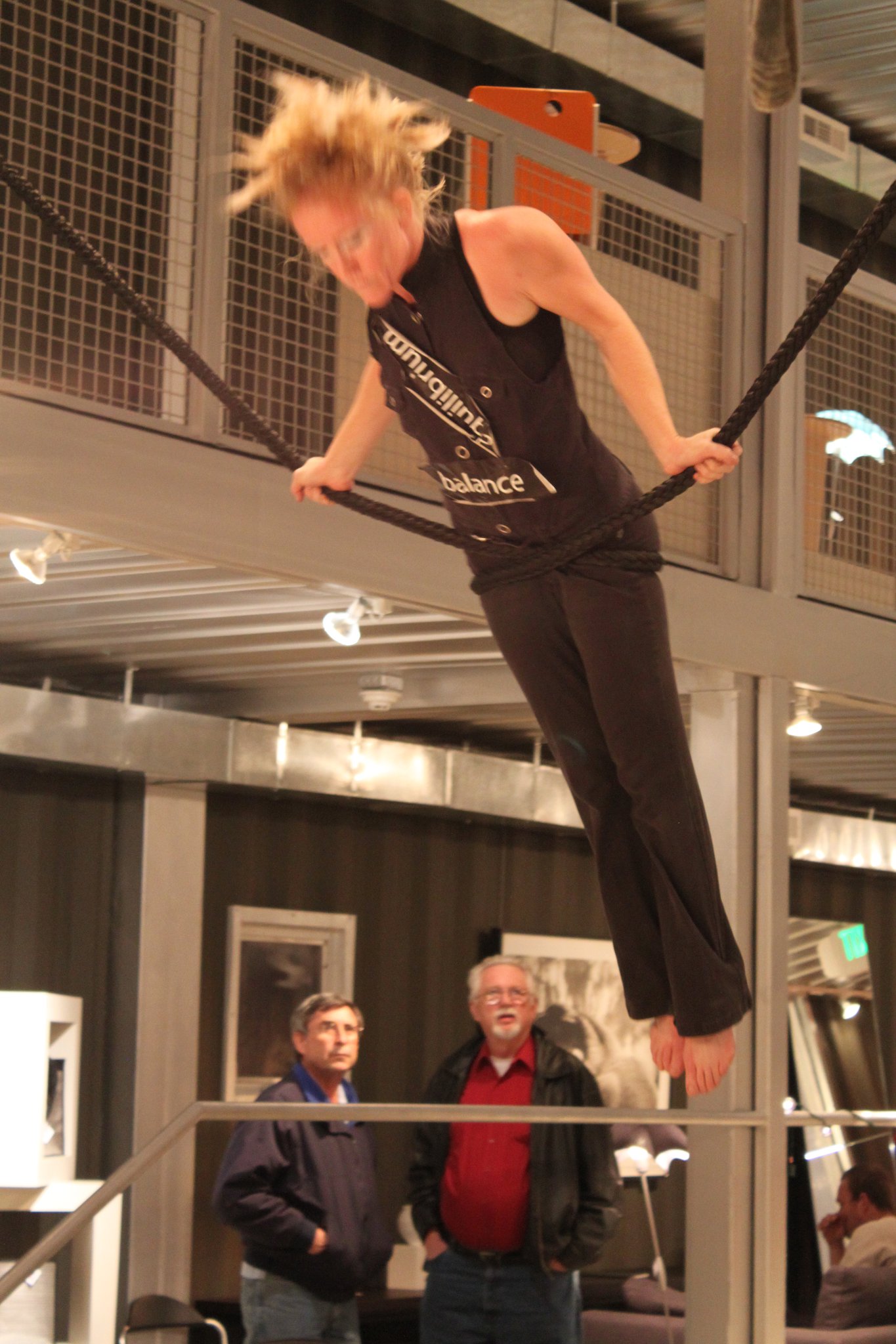To get everybody ready for the holiday spirit, we celebrated our store grand opening with Wise Fool New Mexico, the amazing local Circus Company that started in Penasco, New Mexico way back. It was great to have them perform at the Molecule space. The gals brought their ropes and stilts and played around, hanging from the railing, climbing the walls, and other actions they discovered.